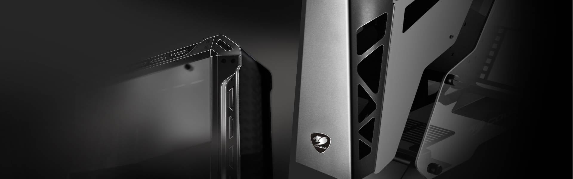 Basé sur un puissant châssis en alliage d'aluminium fraisé CNC, et avec l'ADN du design militaire-industriel de COUGAR présent dans chaque centimètre de son corps, ce boîtier est une œuvre d'art raffinée.