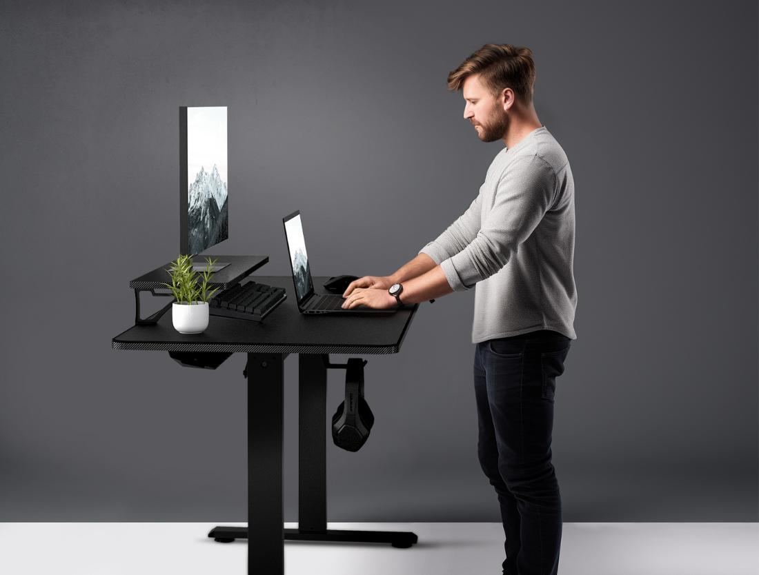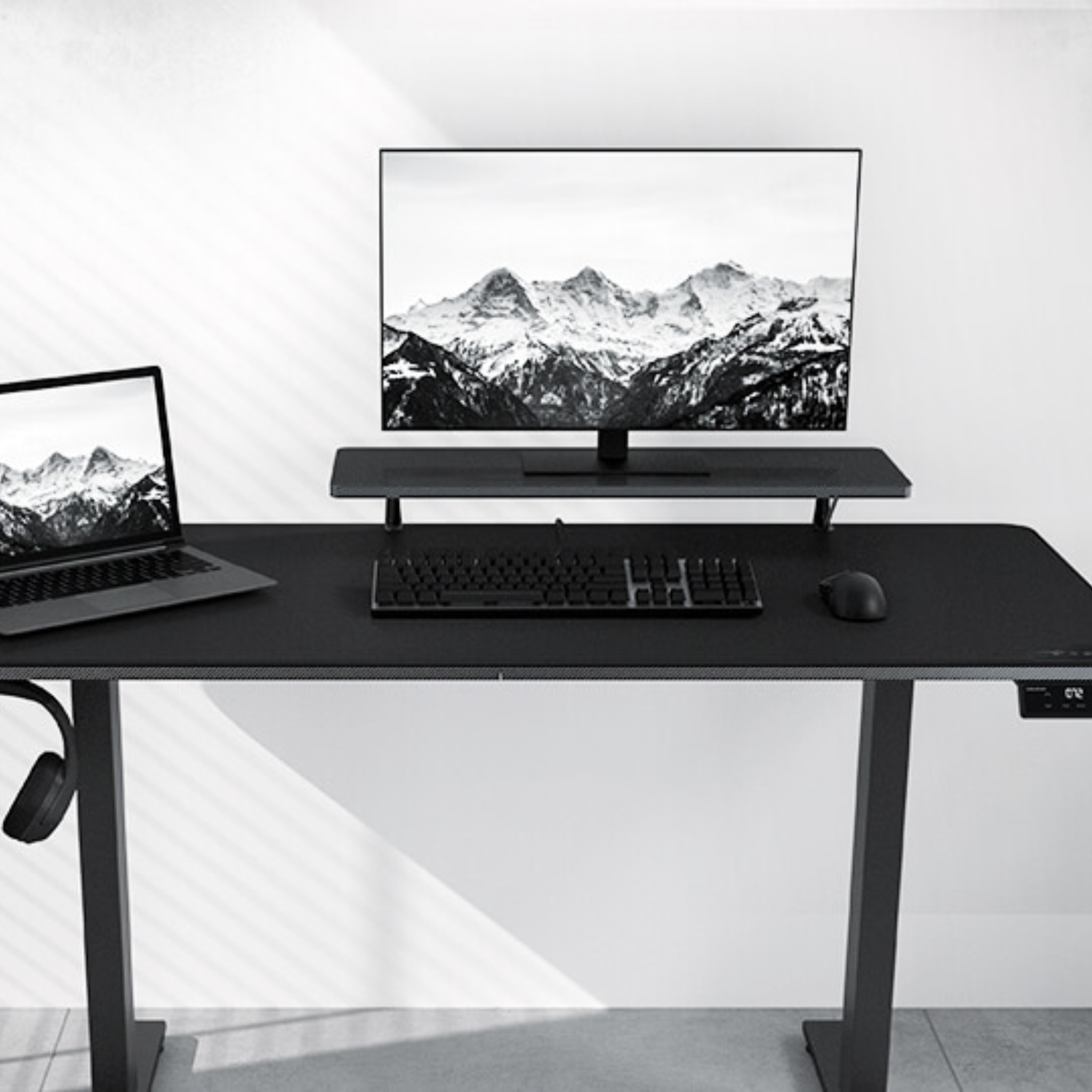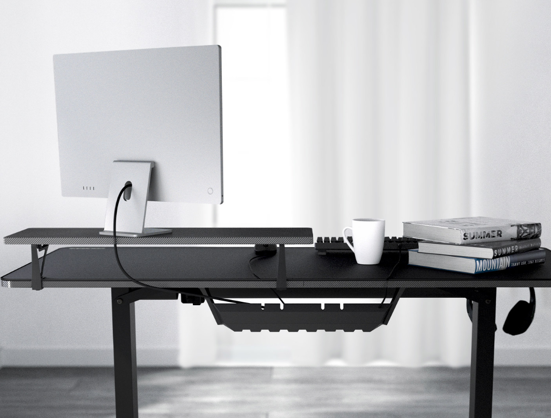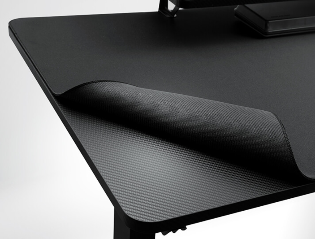 Le stratifié texturé en fibre de carbone confère à la surface du bureau un aspect élégant et moderne.
