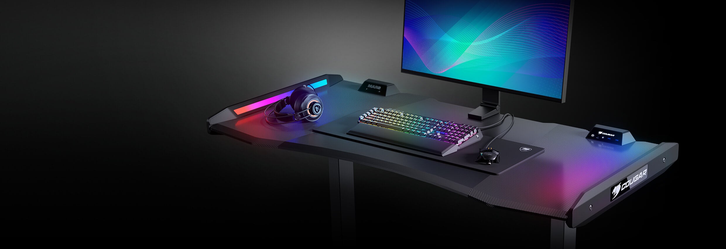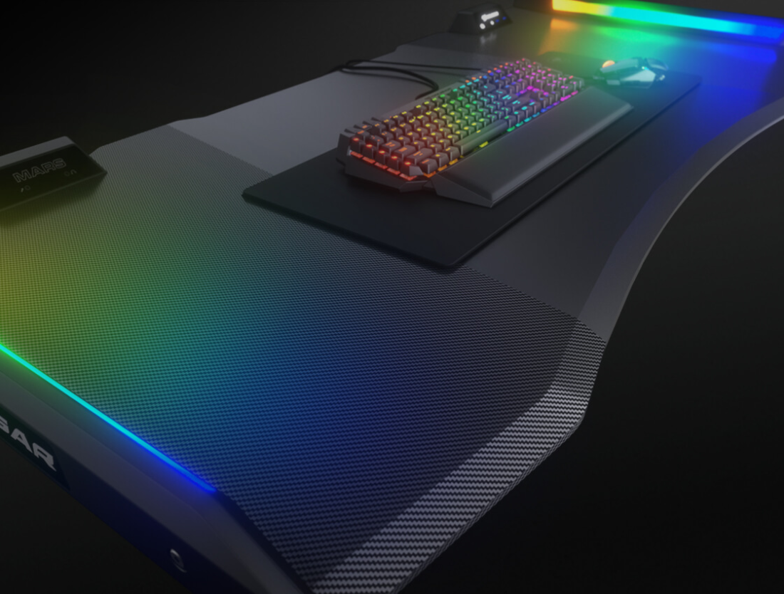 La surface de jeu spacieuse jusqu'à 150 cm de largeur avec texture en fibre de carbone vous offre beaucoup d'espace pour vos moniteurs de jeu, claviers de jeu et autres équipements de jeu. Les conceptions hautement ergonomiques comme les bords incurvés et les coins arrondis vous offrent une expérience de jeu meilleure et plus confortable.