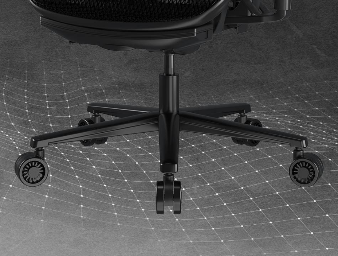Un manchon sur le rayon de la roulette élimine le bruit, permettant au Speeder de glisser sur n'importe quelle surface aussi silencieusement que sans effort. Avec un diamètre de 75 mm, les roues de grande taille améliorent considérablement la stabilité.