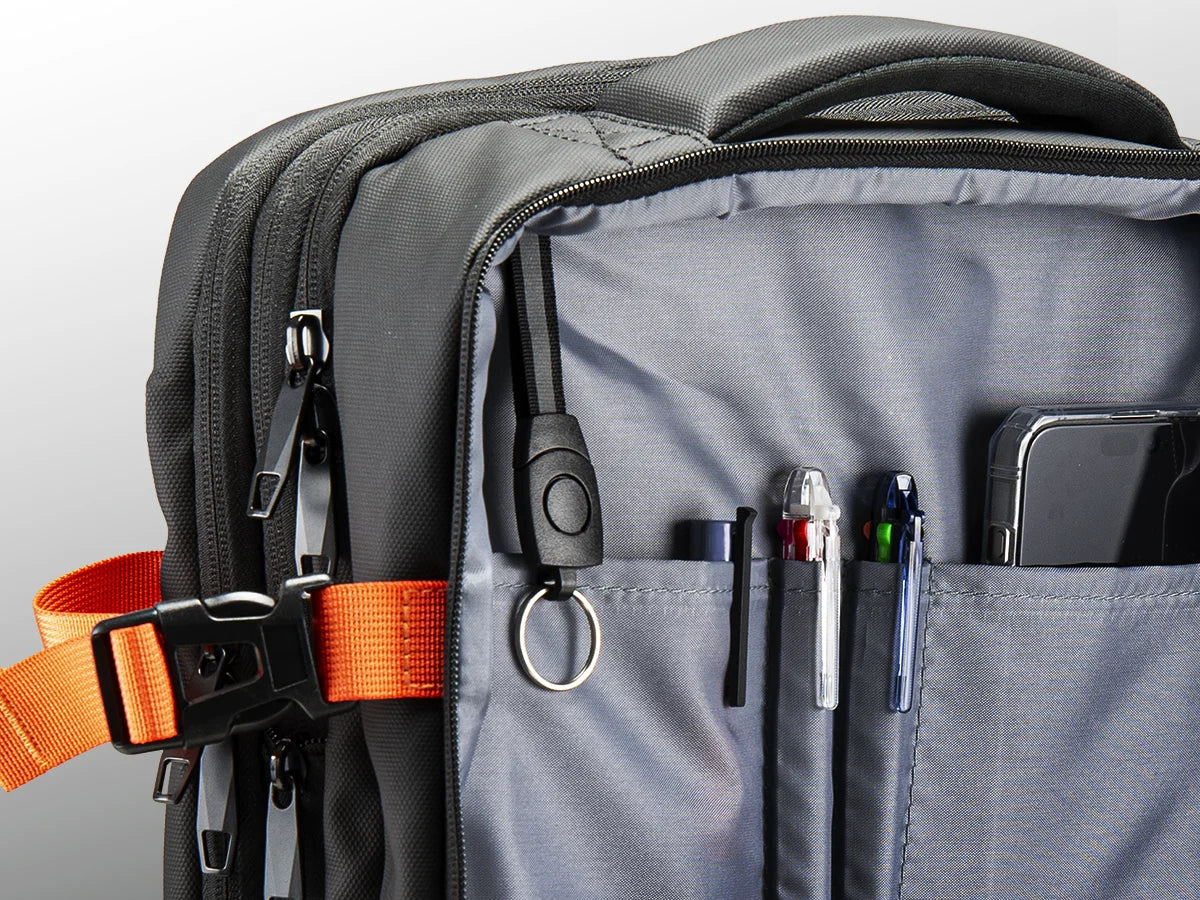 Gardez le contrôle de votre inventaire lors de vos déplacements : les poches de rangement à l'avant facilitent l'accès à vos essentiels, tandis que les poches arrière et arrière antivol protègent vos objets de valeur. Le compartiment principal spacieux et les compartiments supplémentaires permettent de ranger vos affaires et de les rendre accessibles. Un compartiment dédié aux vêtements vous permet de voyager léger et d'être prêt. Protégez votre équipement informatique grâce à une section spéciale pouvant accueillir un ordinateur portable jusqu'à 17 pouces, doublée d'un tissu anti-rayures pour le protéger des chocs et des éraflures. De plus, notre sangle de fixation pratique facilite vos déplacements. Fabriqué en polyester imperméable, le Vanguard est prêt à tout, qu'il pleuve, qu'il vente ou qu'il pleuve, le soleil s'invite dans votre sac.
