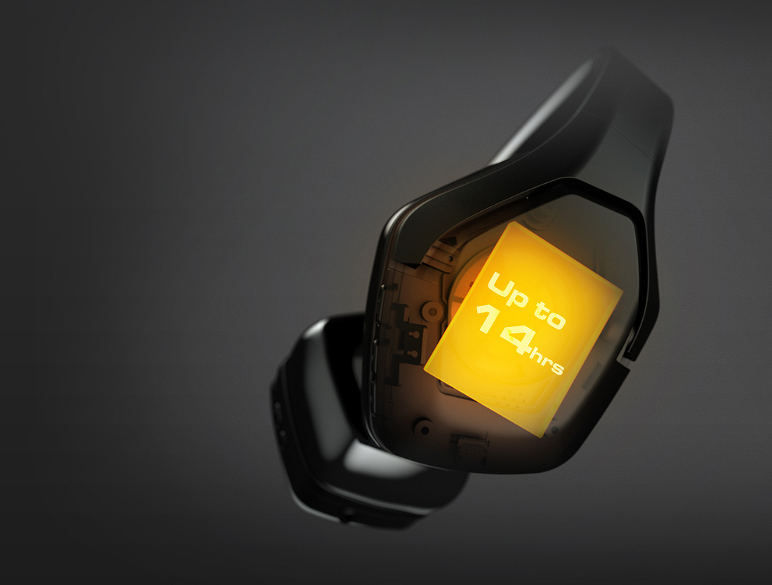 Le casque de jeu Spettro offre d'excellentes performances énergétiques, avec une batterie de 14 heures pour une écoute standard et de 12 heures pour la suppression active du bruit. Que vous jouiez toute la nuit ou que vous preniez un vol de nuit, le casque Spettro est conçu pour durer et offrir un son ininterrompu.