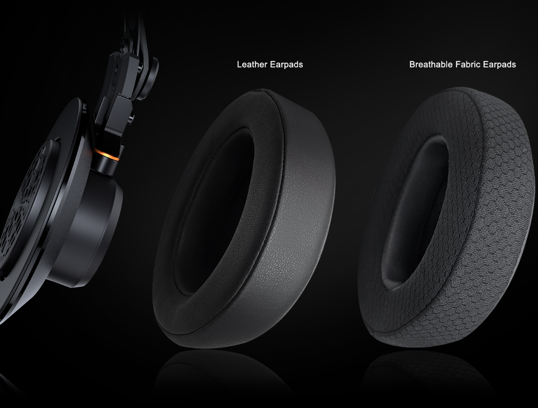 Le VM410 vous équipe de coussinets d'oreille en cuir et tissu respirant qui vous permettent de vivre une expérience de port confortable pendant que vous jouez à chaque jeu.