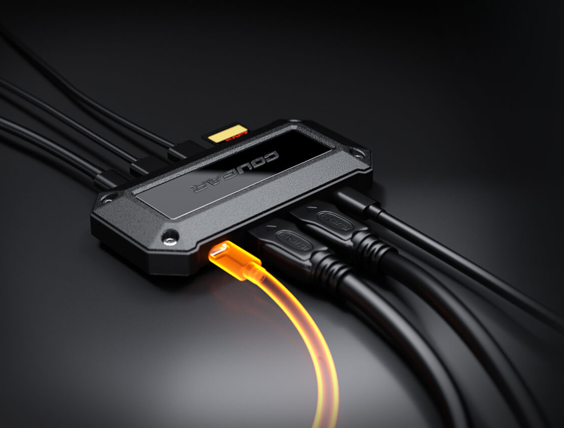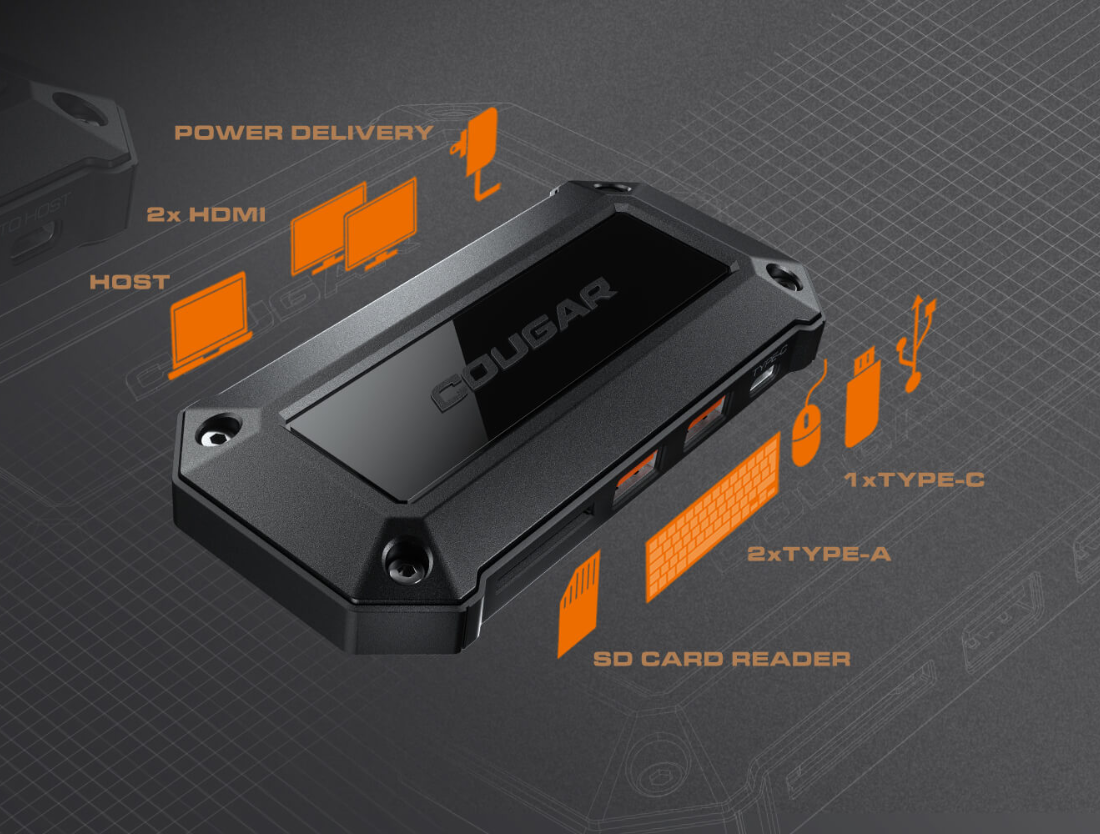 Le hub d'accueil DH07 est conçu pour être fin et facile à transporter. Contrairement à d'autres modèles dotés d'un boîtier monotone en aluminium extrudé, le COUGAR DH07 suit l'identité du DS10 avec son boîtier robuste et sa surface résistante aux rayures.