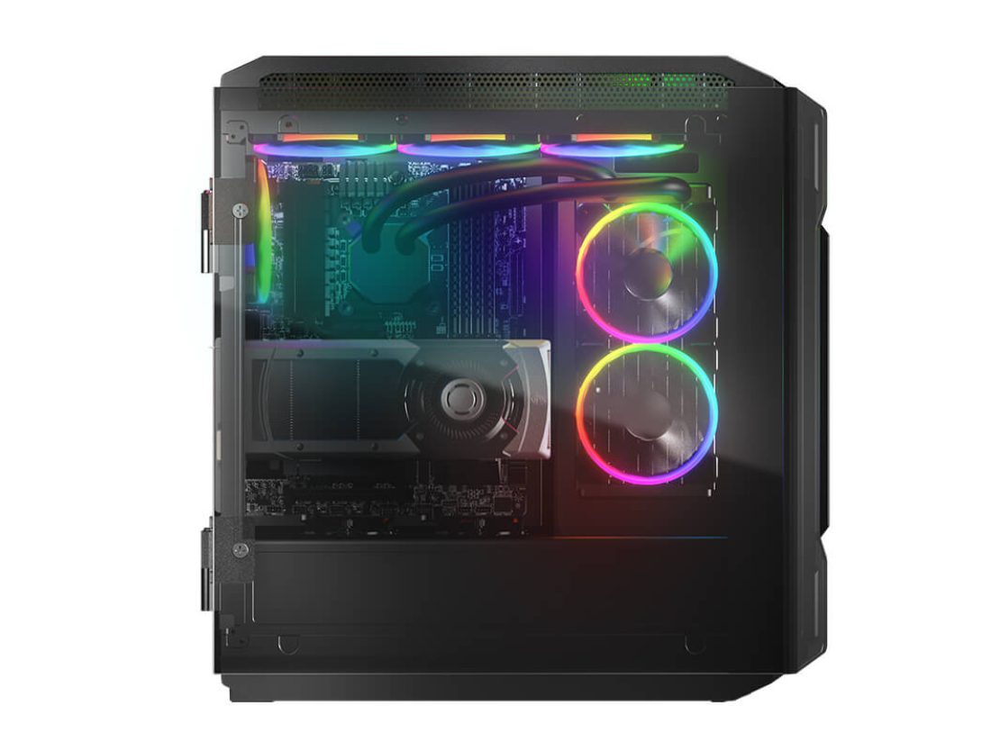 Ce boîtier révolutionnaire est à la fois synonyme de performances et d'esthétique. Pour pousser la puissance de votre système à son paroxysme, le Gemini T Pro prend en charge l'installation verticale du GPU. Cela associe les deux ventilateurs latéraux pris en charge pour produire l'une des fenêtres latérales les plus incroyables qu'un boîtier PC ait jamais eu.