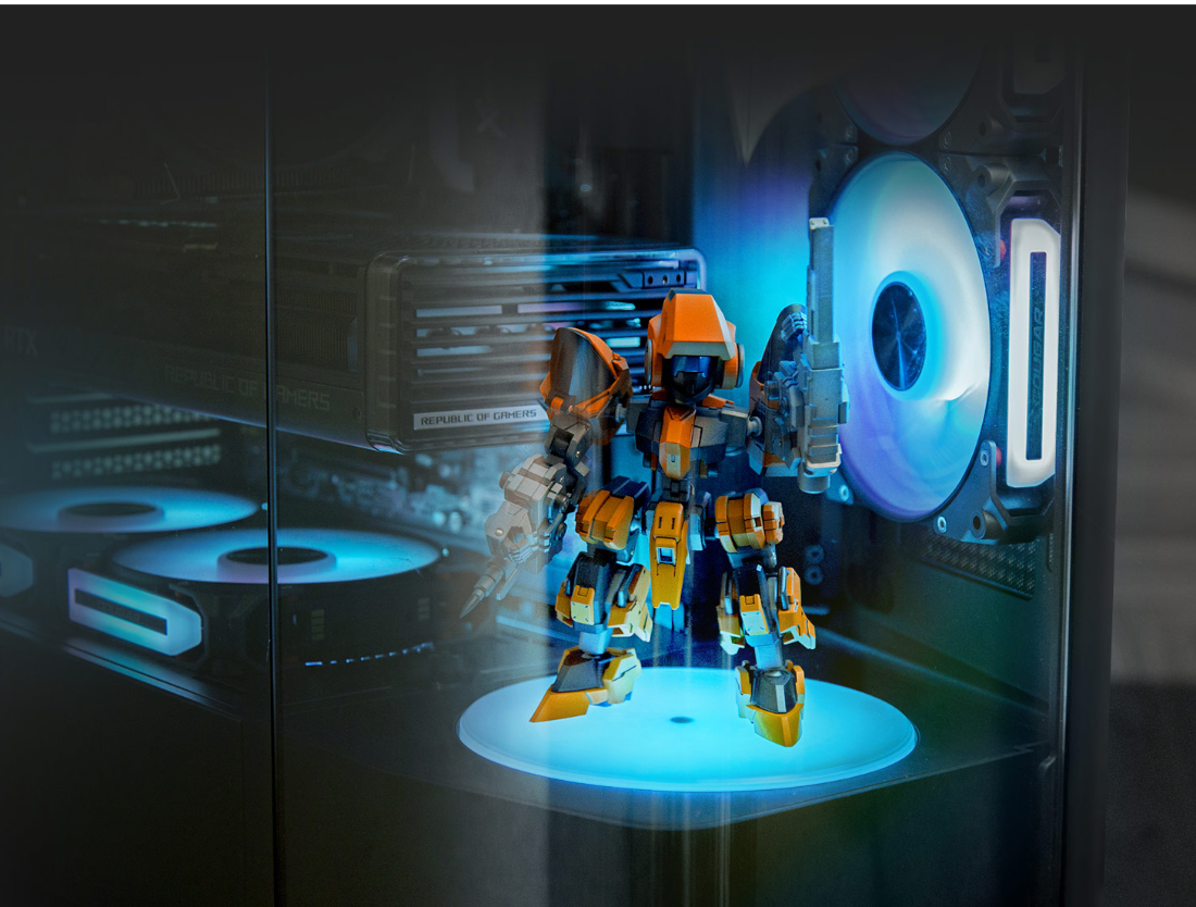Une plate-forme de montage en option, conçue pour mettre en valeur vos précieux objets de collection dans l'intérieur panoramique, offre un espace dédié aux figurines de loisirs, transformant votre PC en une galerie personnalisée.