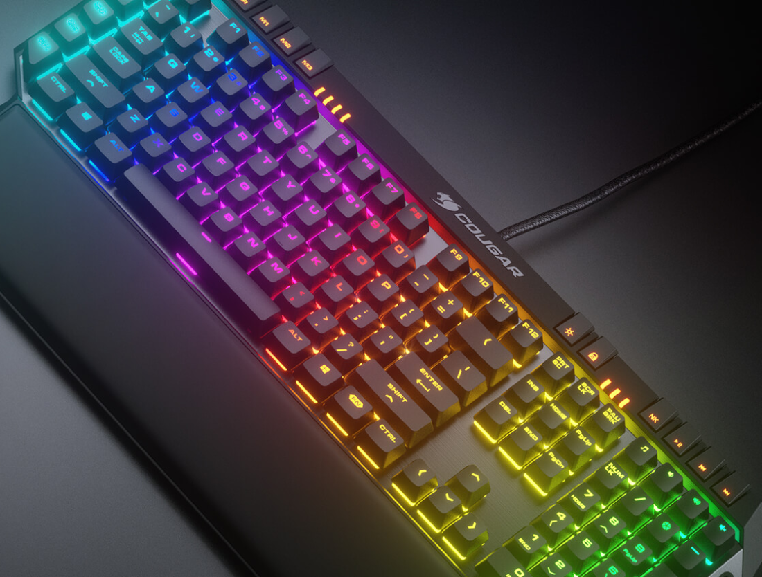 Avec de puissants effets d'éclairage prédéfinis, vous profiterez des rétroéclairages spectaculaires du 700K EVO dès son branchement. Contrôlez et changez facilement les effets de rétroéclairage à la volée grâce aux touches de raccourci pratiques de ce clavier.Et comme si cela ne suffisait pas, vous pouvez créer vos propres effets de rétroéclairage grâce au système COUGAR UIX pour créer votre propre atmosphère de jeu unique. Libérez votre créativité !La plaque frontale en aluminium du 700K EVO allie élégance et durabilité pour créer un visage impressionnant pour cette puissante arme de jeu. Et ce n'est pas tout : le rétroéclairage RVB se reflète sur l'aluminium pour créer un effet visuel glorieux qui transformera votre expérience de jeu !