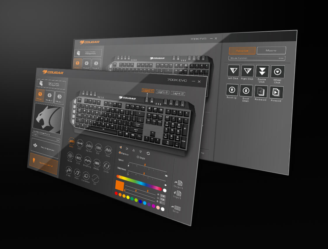 Réglez les fonctionnalités de toutes les touches, enregistrez les macros et créez vos propres effets de rétroéclairage, le tout avec une interface très pratique et intuitive. La mémoire interne du 700K EVO vous permettra ensuite d'emporter jusqu'à trois profils de configuration complets où que vous alliez.