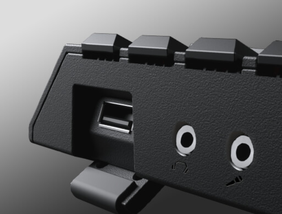 Un port USB idéalement placé vous permet de connecter rapidement votre souris ou d'autres périphériques USB. Le clavier comprend également un port pour casque et microphone.
