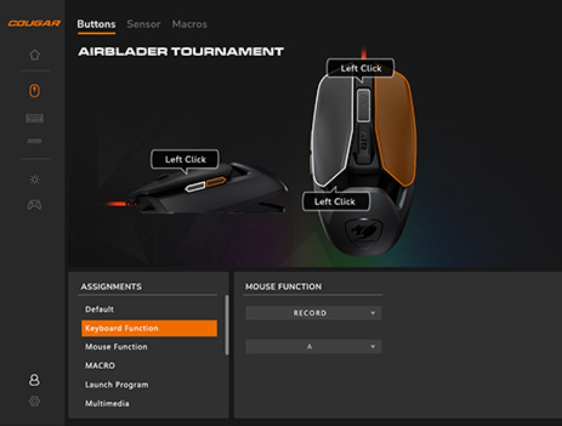 Le COUGAR PIX est un logiciel intégré avancé qui crée une interface utilisateur intuitive et efficace. Ses diverses fonctions vous permettent d'exploiter la personnalisation complète avec les produits COUGAR pris en charge. Du réglage des paramètres au réglage des macros et de l'éclairage RVB, le COUGAR PIX est le centre de commande pour obtenir une expérience optimale !