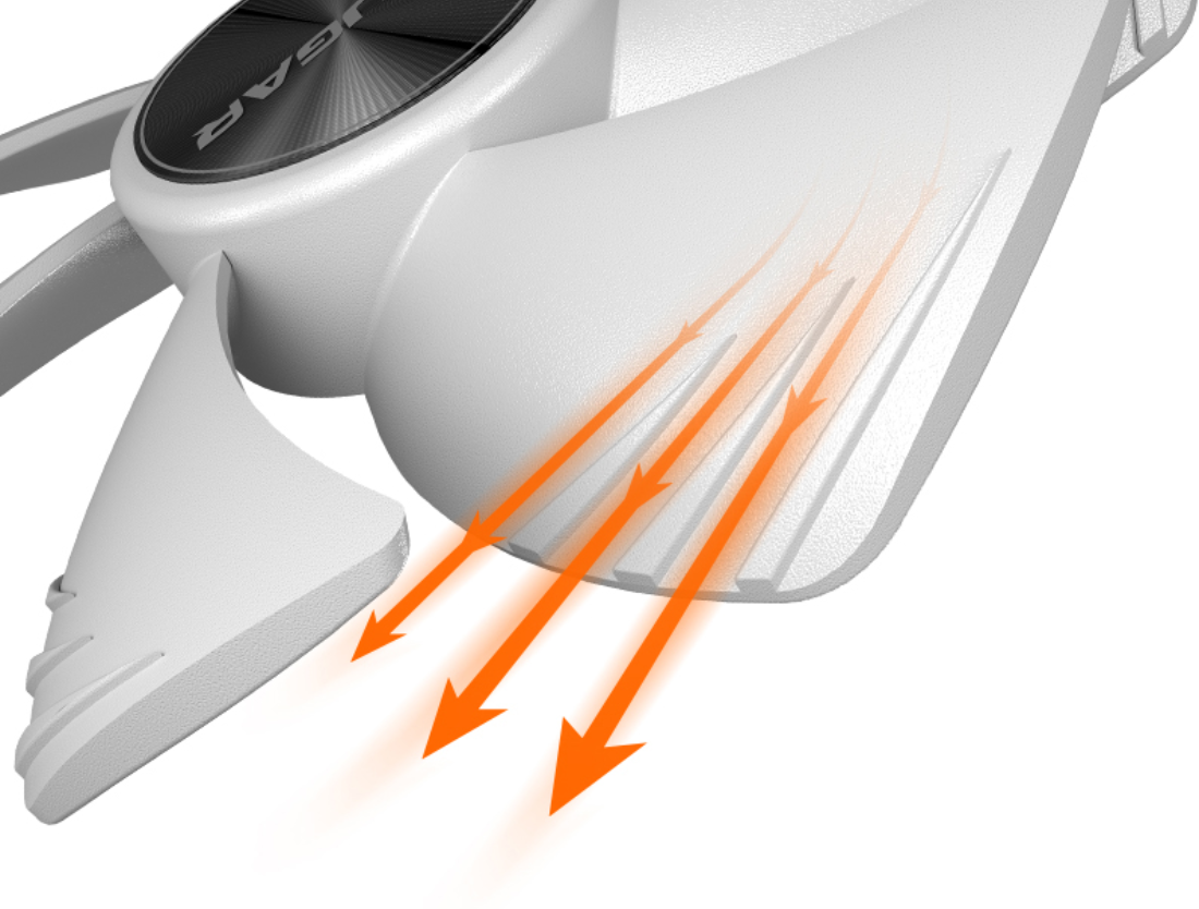Les canaux de flux d'air améliorés séparent le flux côté aspiration en flux minimaux, améliorant ainsi l'efficacité et réduisant le bruit.