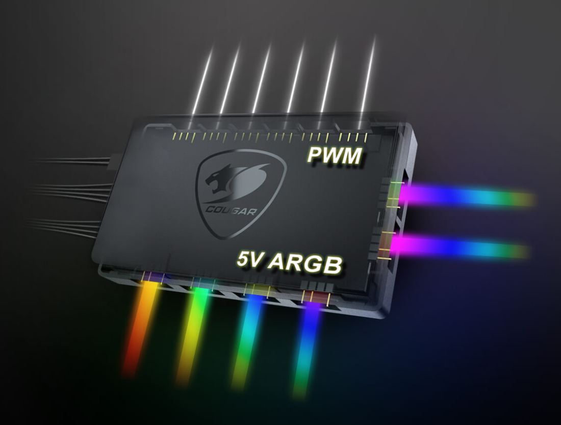 COUGAR CORE BOX V3 fournit 6 ensembles de contrôle PWM et 6 ensembles de ports de synchronisation d'éclairage ARGB qui peuvent gérer de nombreux composants en même temps. En outre, il prend en charge deux directions de contrôle d'éclairage ARGB et la fonction de contrôle d'éclairage qui peut changer le mode de synchronisation ou les effets intégrés. Cela donne plus d'options aux joueurs pour gérer les câbles et améliorer l'expérience d'agencement du PC.