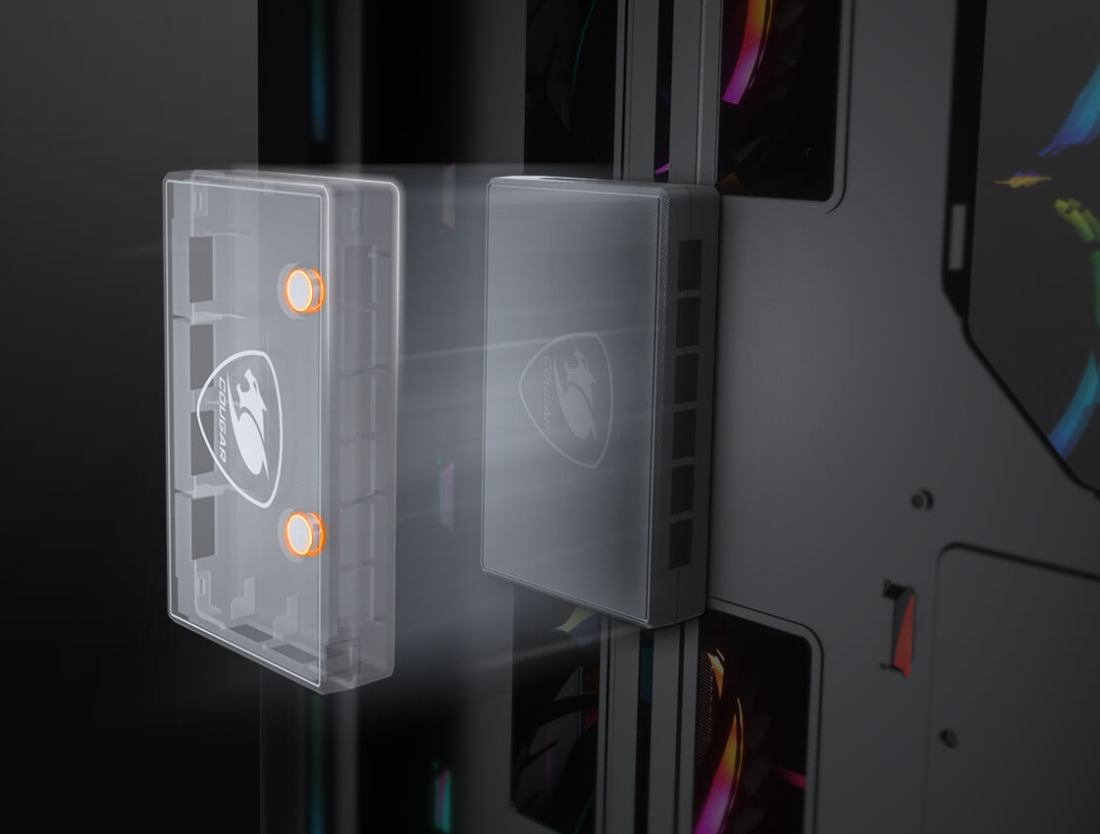 Avec sa taille compacte de 96x56x17 mm et sa conception magnétique, le COUGAR CORE BOX V3 peut être installé n'importe où à l'intérieur du châssis, permettant aux joueurs de décider du centre de gestion où ils le souhaitent. Cela permet non seulement une expérience d'agencement de câbles parfaite, mais aussi de connecter efficacement plusieurs ventilateurs et de contrôler l'éclairage.