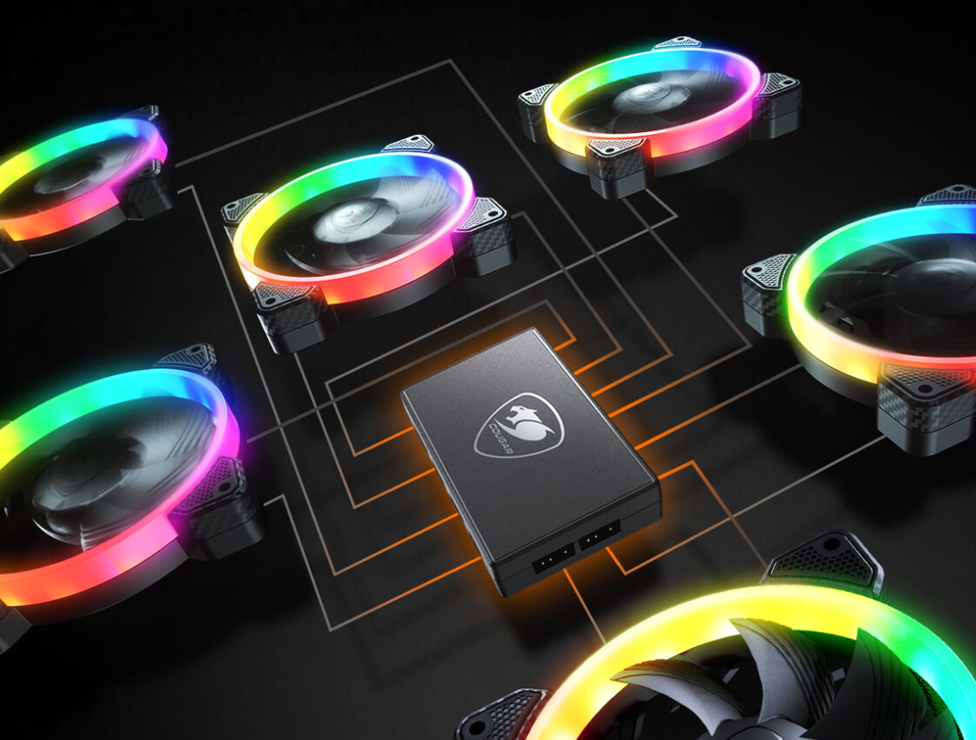 Avec le ventilateur de refroidissement COUGAR VORTEX VK120 ou des ventilateurs puissants d'autres marques, le contrôleur COUGAR CORE BOX V3 peut maximiser ses performances. Il permet non seulement aux joueurs de créer un boîtier de refroidissement exclusif haute performance, mais également d'avoir l'effet d'éclairage ARGB exquis. C'est certainement le meilleur assistant pour créer un PC de jeu ARGB distinctif.