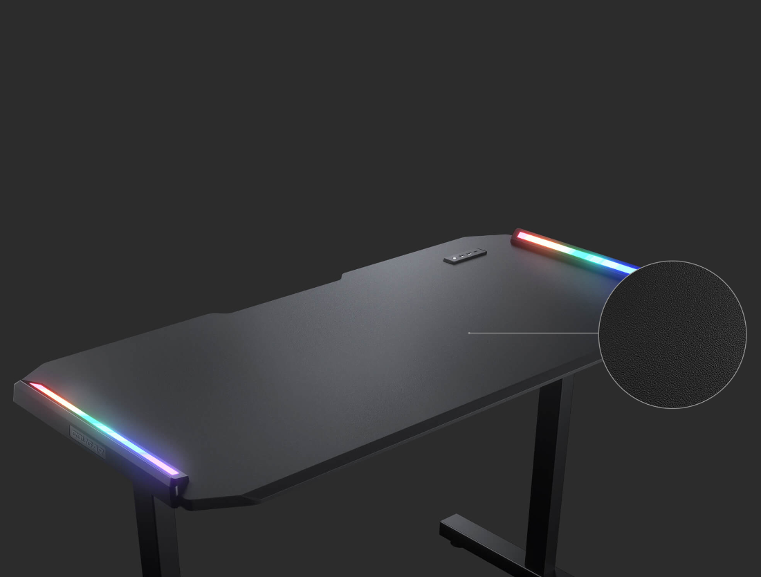 Offrez à votre espace de jeu un magnifique éclairage RVB avec le bureau de jeu DEIMUS 120. L'éclairage RVB double face est livré avec différents schémas de couleurs et modes pour rendre votre expérience de jeu plus immersive.