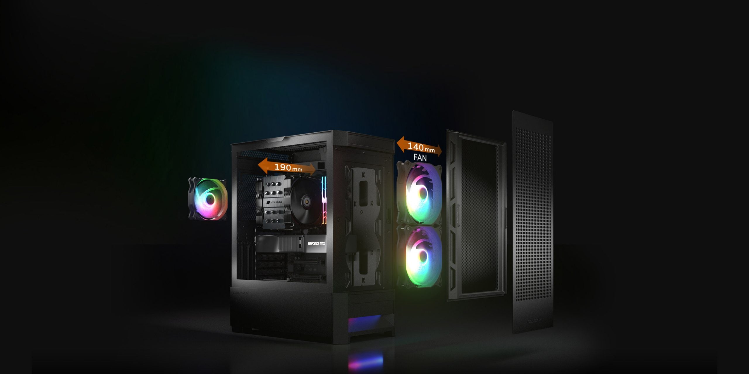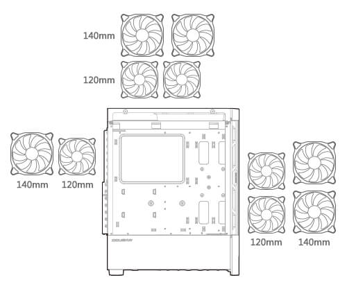 L'espace intérieur du Duoface RGB peut accueillir jusqu'à cinq ventilateurs, un radiateur de refroidissement à eau de 280 mm et un refroidisseur de processeur de 190 mm de hauteur. Cet immense potentiel de refroidissement évite la surchauffe de vos composants critiques.