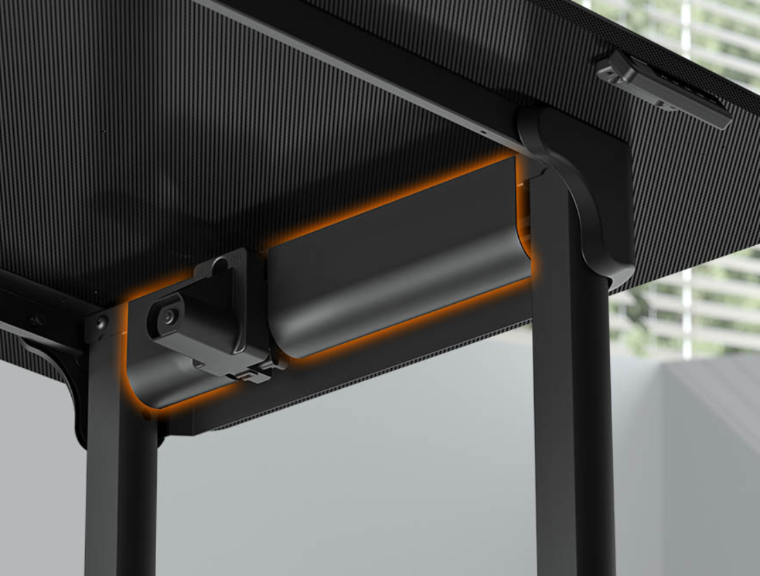 Des boucliers de sécurité recouvrent les arbres de transmission et les moteurs du mécanisme de réglage de la hauteur, empêchant tout contact corporel accidentel avec des pièces mobiles ou des accrocs aux vêtements.